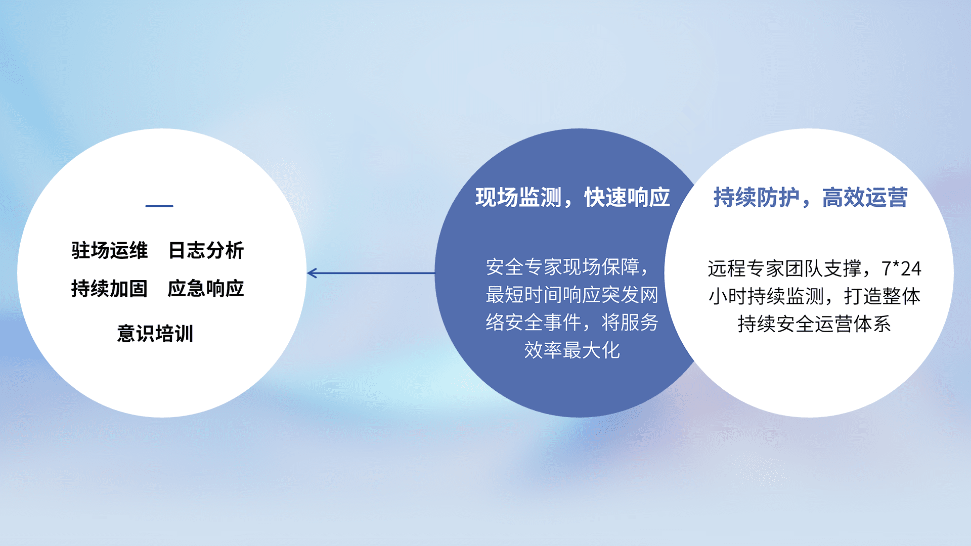 7X24小时持续监测安全事件,保持安全策略有效性,降低资产脆弱性风险,,,精准拦截黑客攻击,,,减少被黑客利用的机会,,,,第一时间遏制,,,降低损失。。
